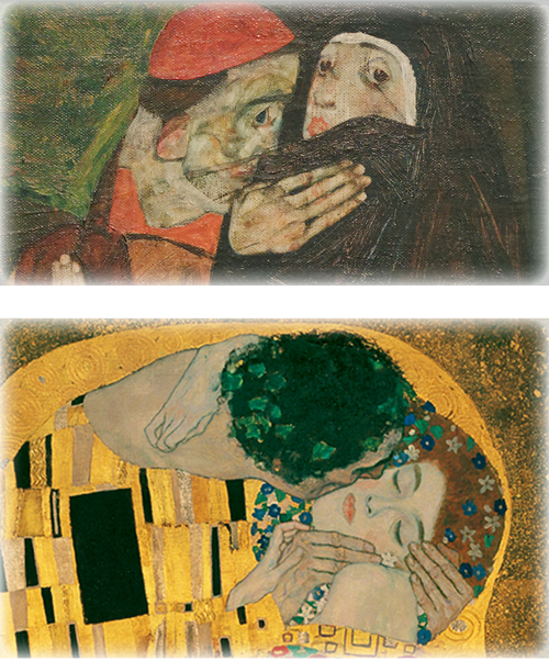 Quelques années plus tard, Schiele livre une version extraordinairement subversive de l’œuvre de Klimt, sobrement intitulée Le Cardinal et la Nonne.